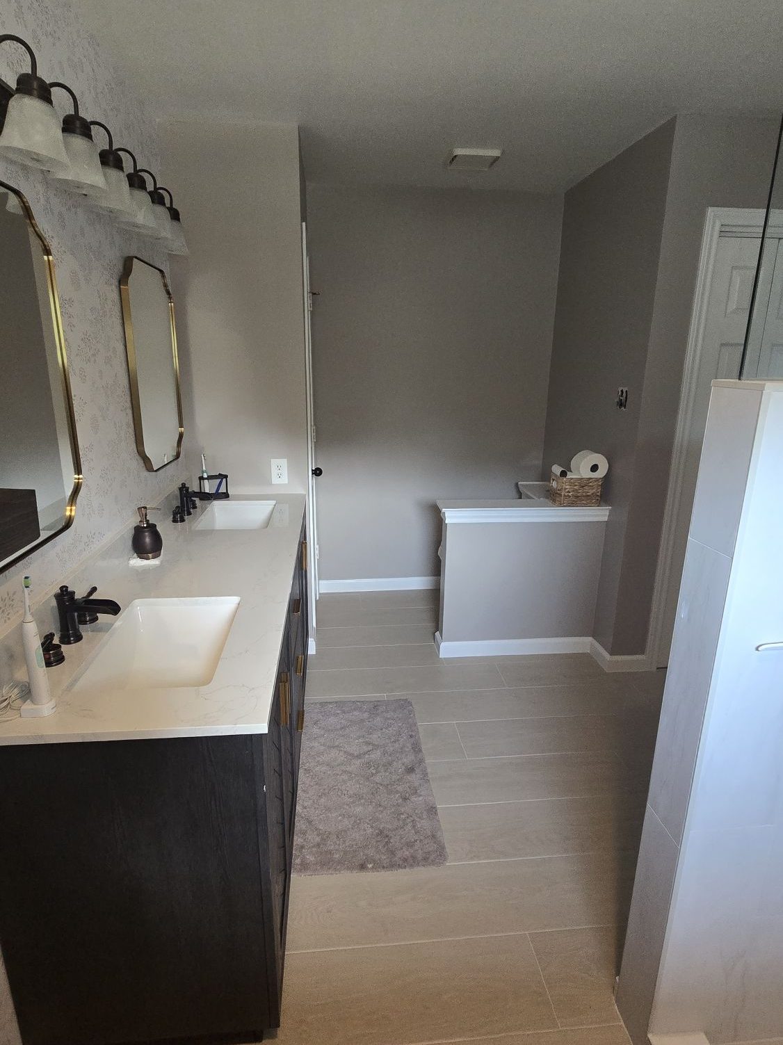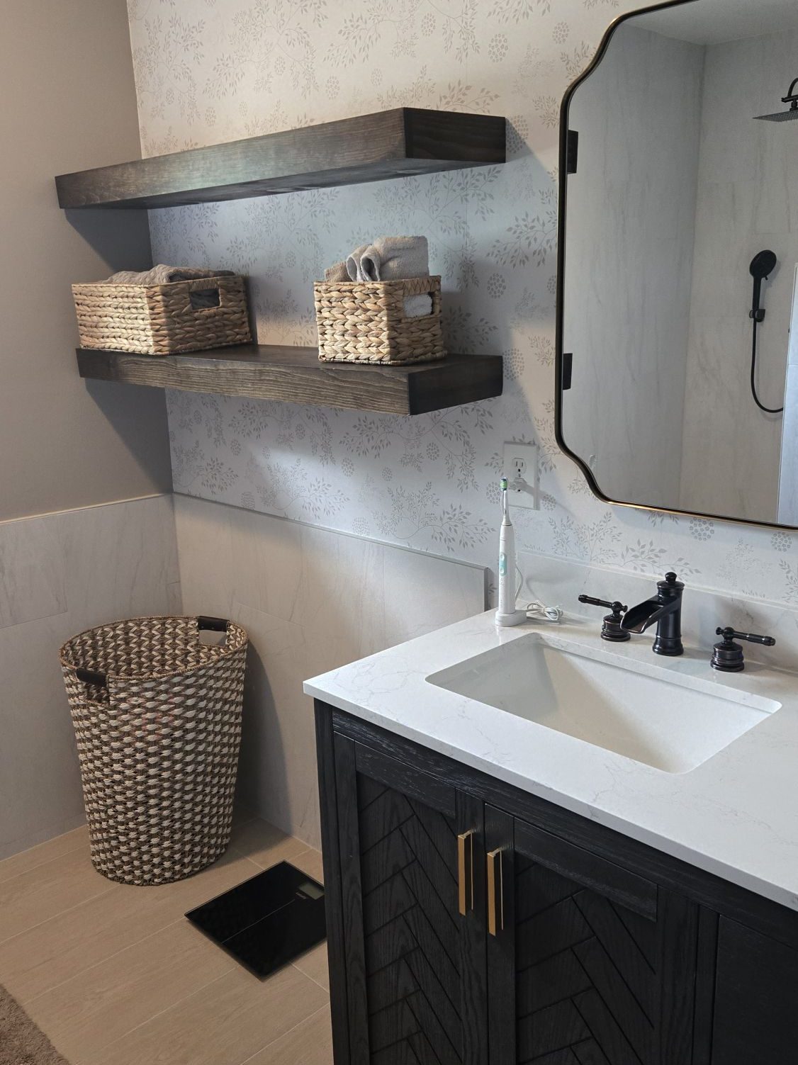 We completed our first remodel this year (and by completed, I mean we hired a company to do the work). Our bathroom was old and moldy, with tiles falling out of the shower — very much in need of attention.